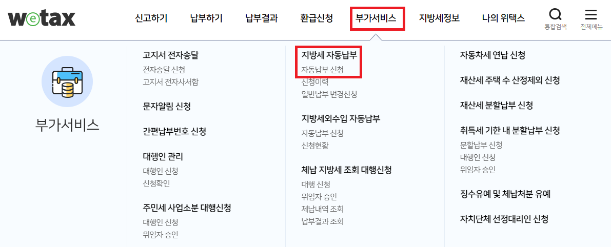 위택스 - 부가서비스 - 지방세 자동납부 - 자동납부 신청